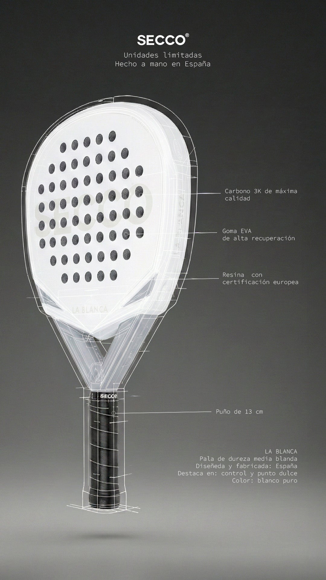 Todas las palas Secco llevan doble capa de carbono en las caras además de refuerzos en el puente y en las zonas altas de golpeo. Son palas hechas para resistir.