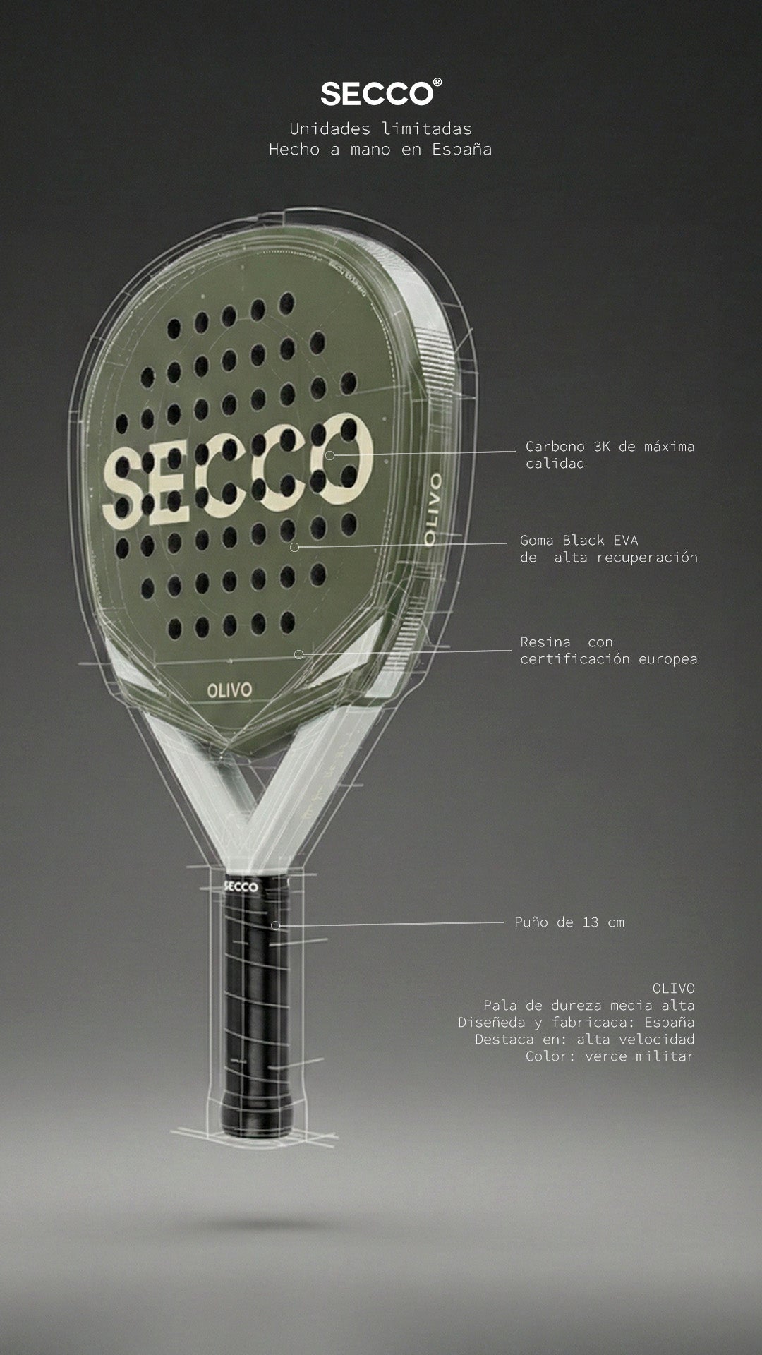 Todas las palas Secco llevan doble capa de carbono en las caras además de refuerzos en el puente y en las zonas altas de golpeo. Son palas hechas para resistir.