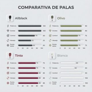 La AllBlack es una pala artesanal pensada para jugadores ofensivos que quieren más potencia sin perder control. Su estructura sandwich aporta firmeza y un tacto de nivel medio-duro.